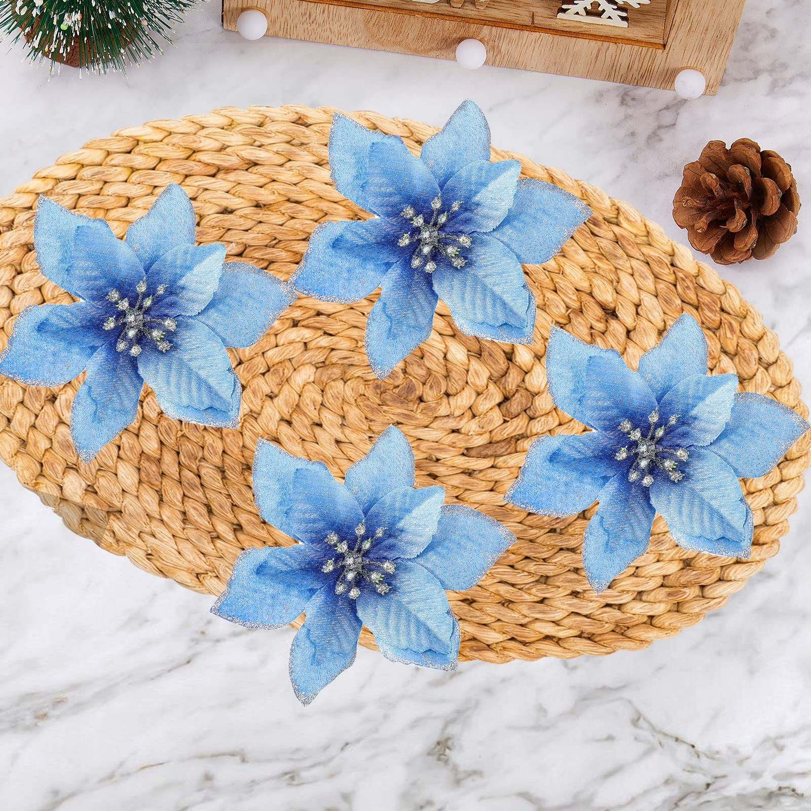 Product Details Key Features Gorgeous Looking: Dazzling glitter flower ornaments are by the real poinsettia with seasonal colors and rich details. Use them to make your fire place, front porch door, window, yard, stair railing and fence full of holiday cheer. Ideal Decoration for Christmas, Wedding, Party, etc.: Glitter poinsettia flowers will look great on your tree, garland, wreath and where you put them on. They will just add festive spirit and sparkle around your home. Absolutely shiny especially under light in evening! You can arrange them with other